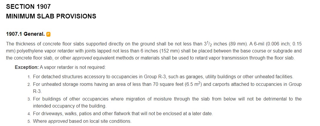 slab provisions of the building code. Section 1907 currently only contains one item.